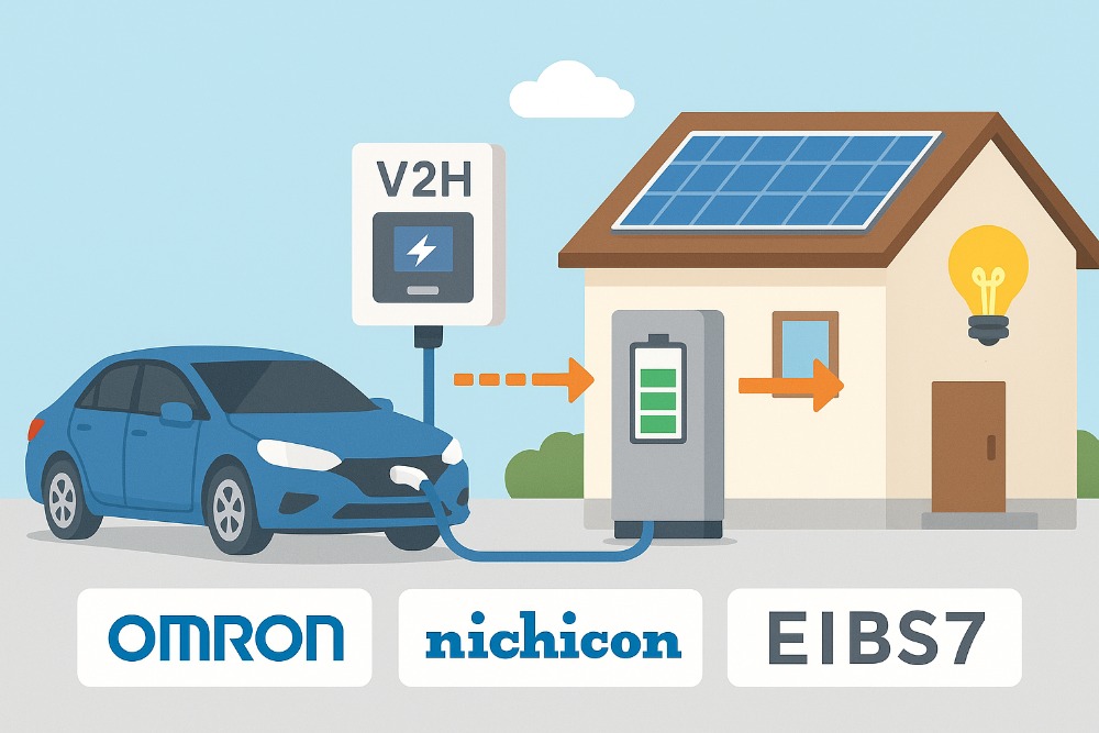 - オムロン:V2Hスタンドの開発をいち早く行い、EVから住宅への電力供給を実現。
