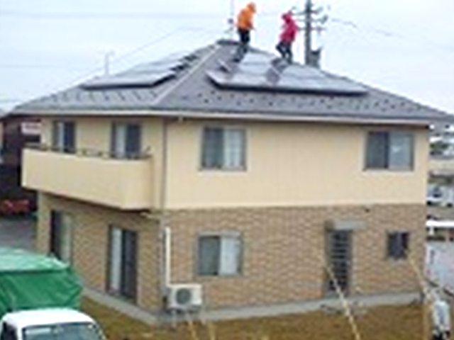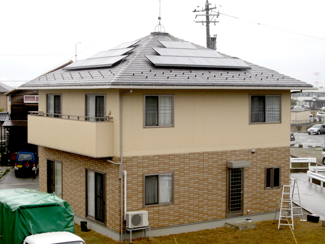 住宅用太陽光発電 長州産業 3.78kW Y様邸 設置写真 施工写真 現場住所 石川県鹿島郡中能登町 工期 1日 完工時期 2010年4月 パネル 長州産業 パネル設置容量 3.78 kW パネル種類 HIT太陽電池(210W) 屋根の種類 スレート 蓄電池の設置 なし