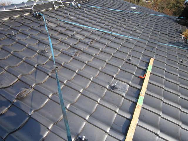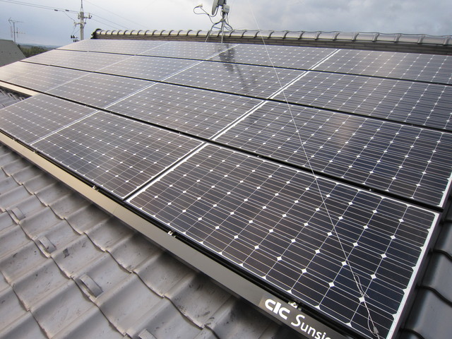 住宅用太陽光発電 長州産業 4.14kW T様邸 設置写真 施工写真 現場住所 石川県七尾市 工期 1日 完工時期 2011年12月 パネル 長州産業 パネル設置容量 4.14 kW パネル種類 HIT太陽電池(230W) 屋根の種類 和瓦 蓄電池の設置 なし
